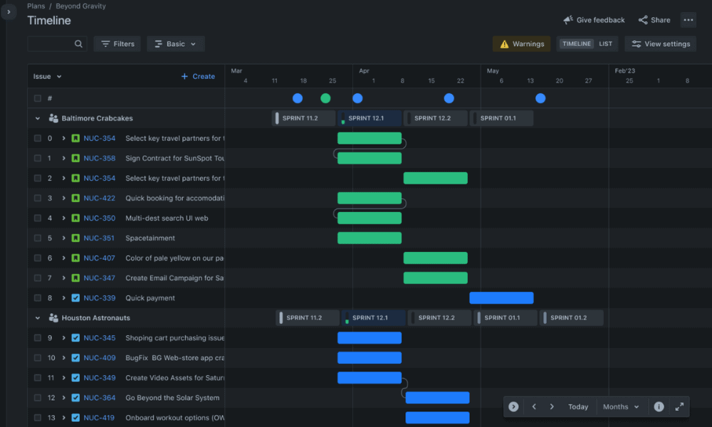 Jira is the best tool for teams that need deep project structure, Agile workflows and detailed tracking. It supports technical workflows with robust sprint planning, issue tracking, advanced reporting and built-in roadmap views for long-term project planning and dependency tracking. Start a 30-day free trial of the Premium plan.