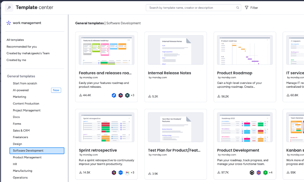 monday.com offers easy-to-use templates for different project needs.