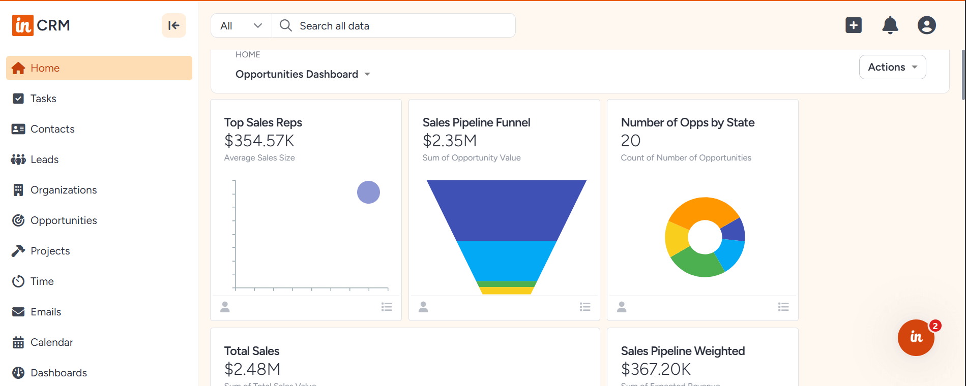 Insightly is ideal for businesses seeking tight integration between their CRM and project delivery. The platform helps teams track projects even after deals close, making it suitable for service-based businesses, agencies and IT teams. Insightly also provides extensive customization options, which may result in a steep learning curve.