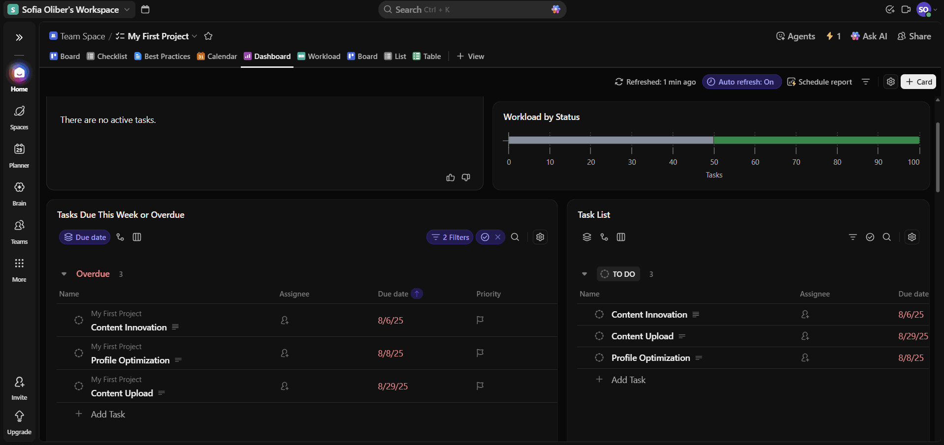 ClickUp’s free version offers advanced tools like sprint management and automations. Additionally, the platform provides an excellent balance between depth and customization, making it accessible for both beginners and complex teams. This is why I find ClickUp to be an ideal fit for almost any kind of team.