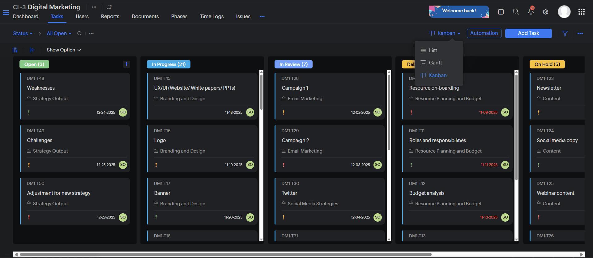 Zoho Projects’ free plan stands out for including views and dashboard options that are often locked behind other tools’ paywalls. It offers a solid set of essential features, such as document sharing and subtasks, especially for teams managing only up to three projects.