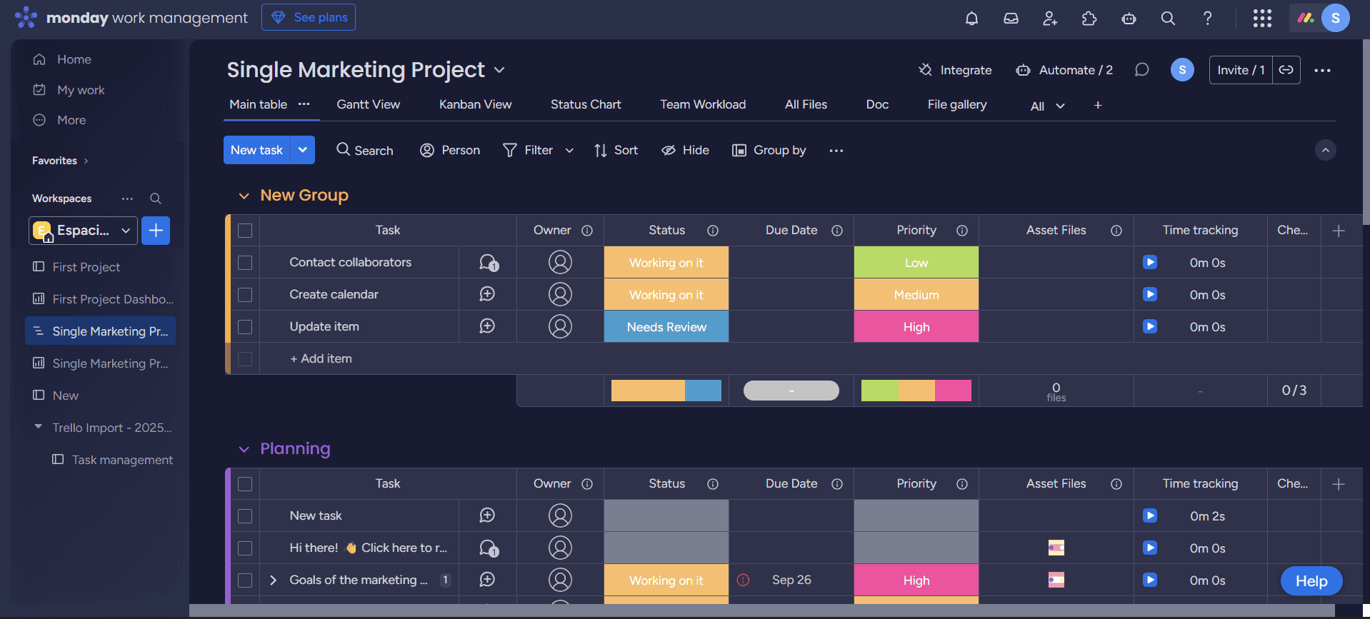 monday.com delivers a powerful and intuitive experience with an easy learning curve. The platform also stands out for its flexibility and customization, though the free plan is a bit more limited in terms of features, such as views.
