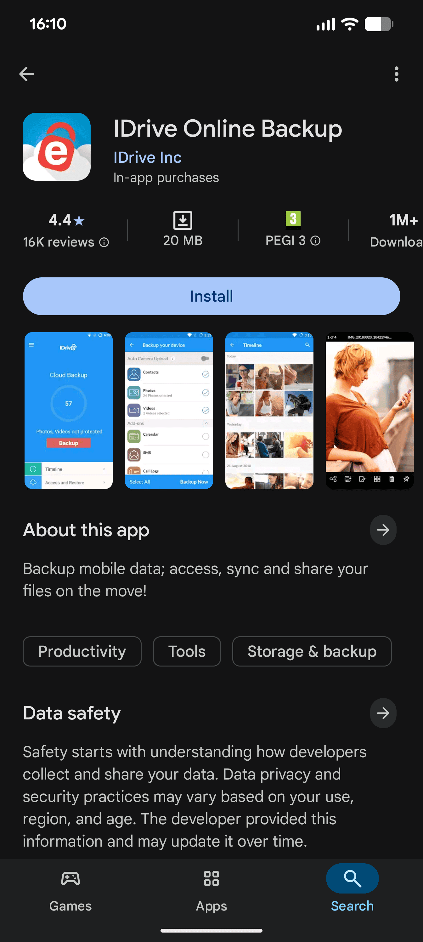 I believe IDrive is the best service to back up data from your phone to the cloud, so I’ll be using it for the following guide. The IDrive app is available for both iOS and Android and works the same way on both.