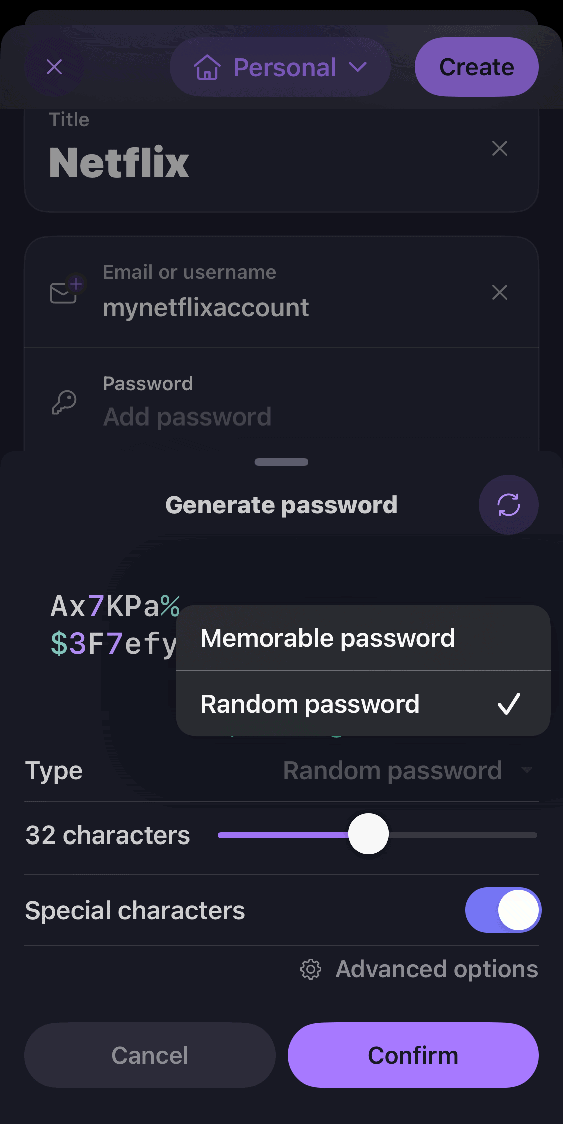 Create unique and complex passwords and passphrases with Proton Pass’ generator.