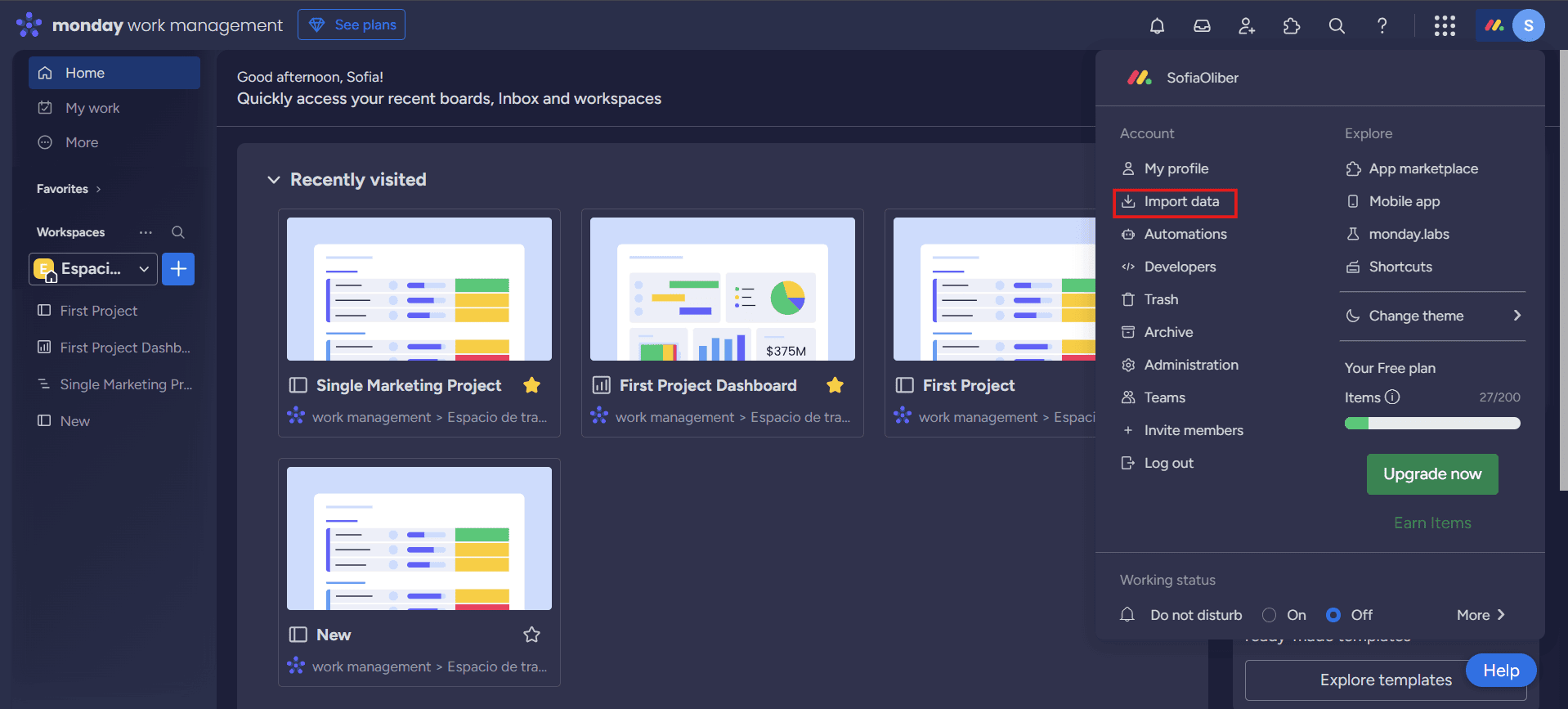 Not all tools support an import option, and those that do might have varying processes. Some, such as Asana, can support CSV files; others, like ClickUp, have their own built-in Trello importers. Finally, some alternatives use third-party apps to do the migrations, like our chosen option monday.com, which we’ll use as an example.