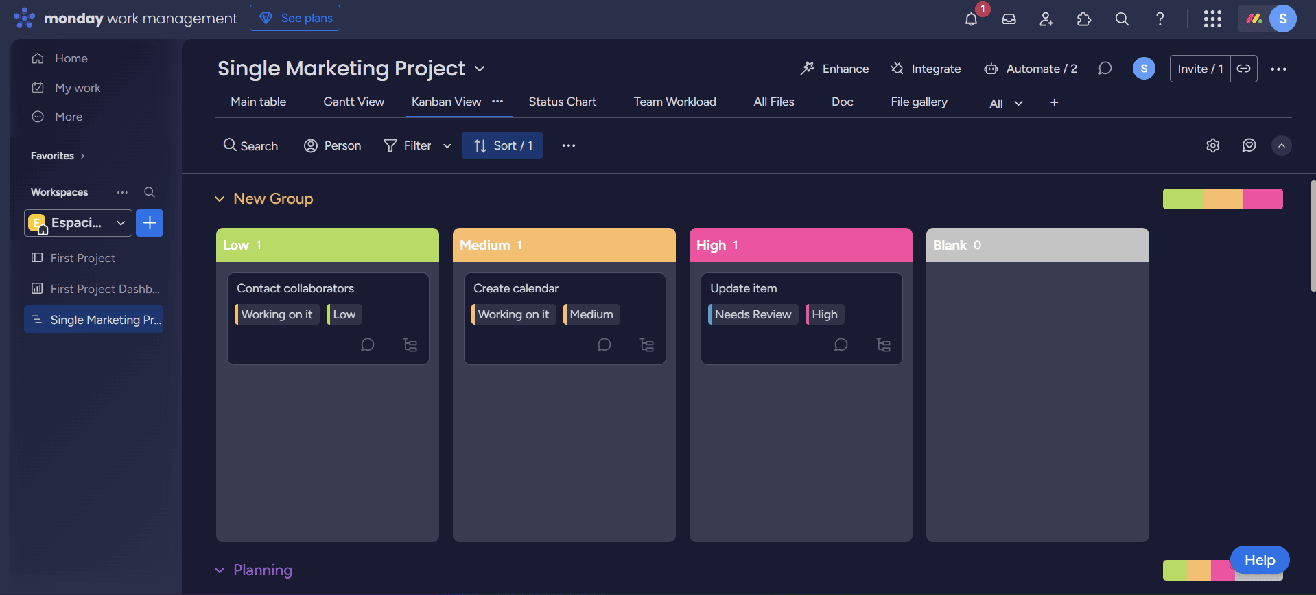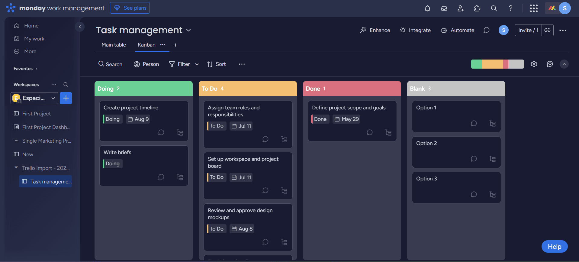 Free kanban board included: Trello’s main feature is its kanban board with drag-and-drop functionality. monday.com includes this view on its free version.