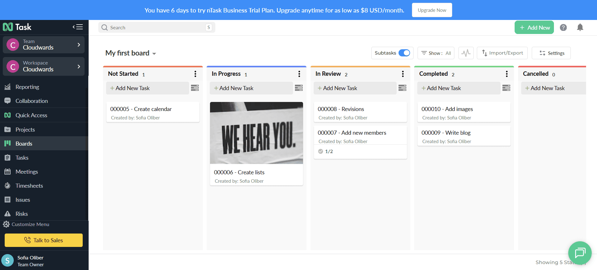 nTask earned a mention thanks to its generous free plan, which includes built-in time tracking, meeting management and risk issue tools as well as accessible prices. It might not offer deep customization, but it includes a great kanban board that’s perfect for starters and small teams who need a little bit more structure than Trello. You can learn more in our in-depth nTask review.
