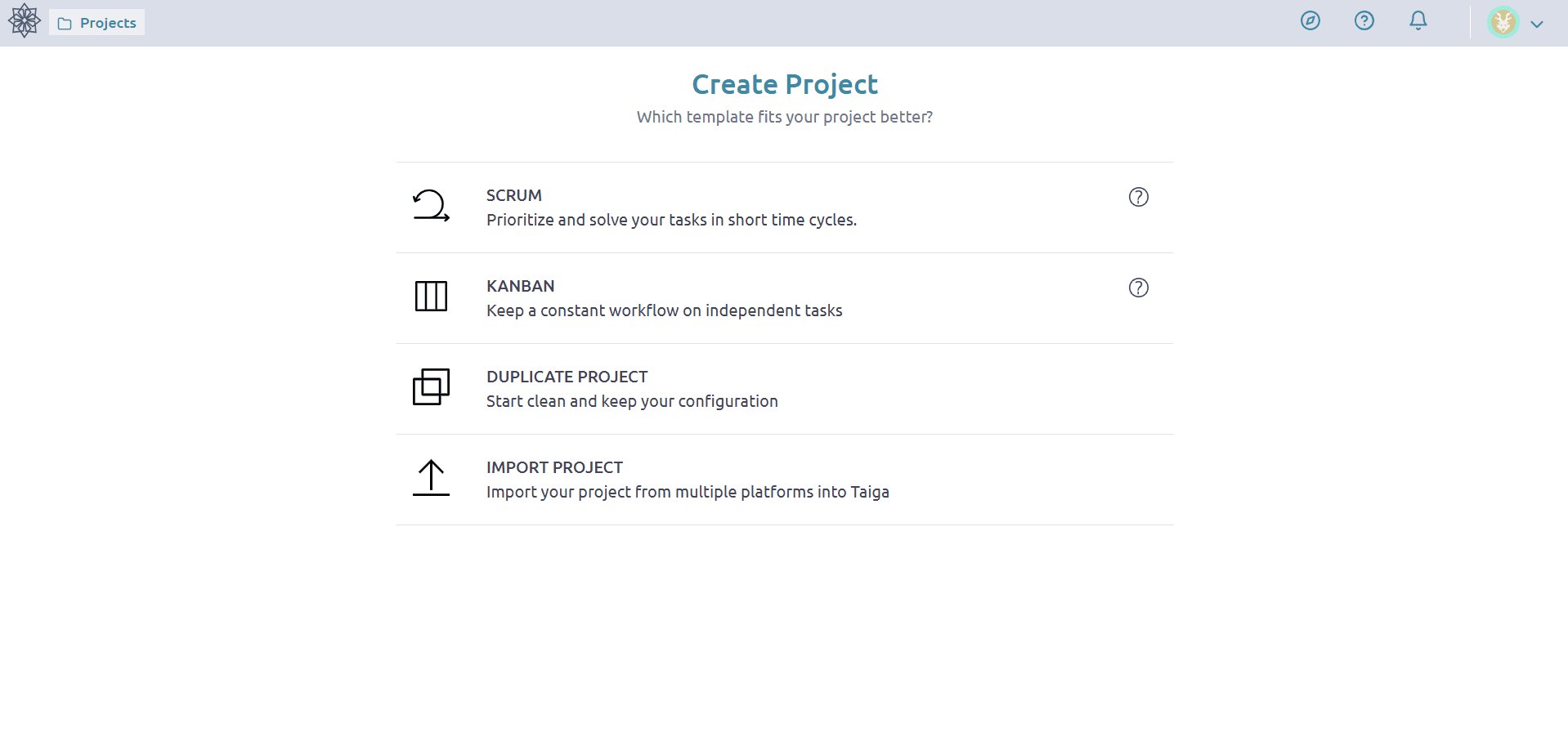 Taiga is simple enough, letting you choose a generic template when creating a new project.