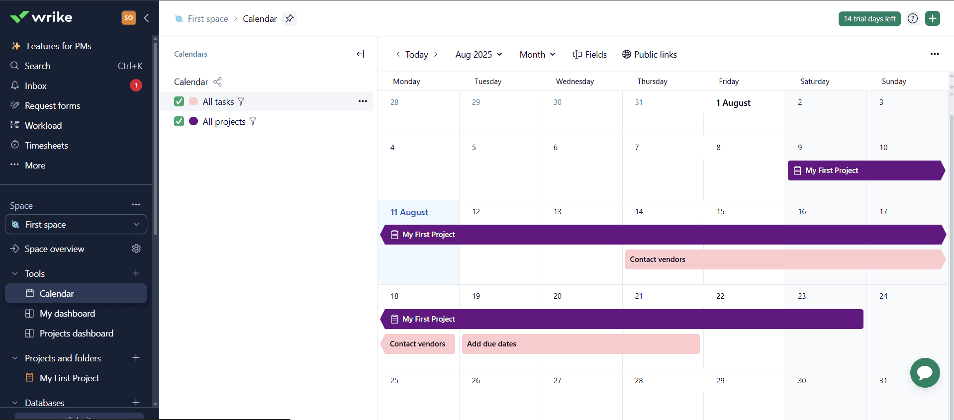 Wrike offers not only a calendar view, but also a calendar tool to manage large projects and advanced planning.