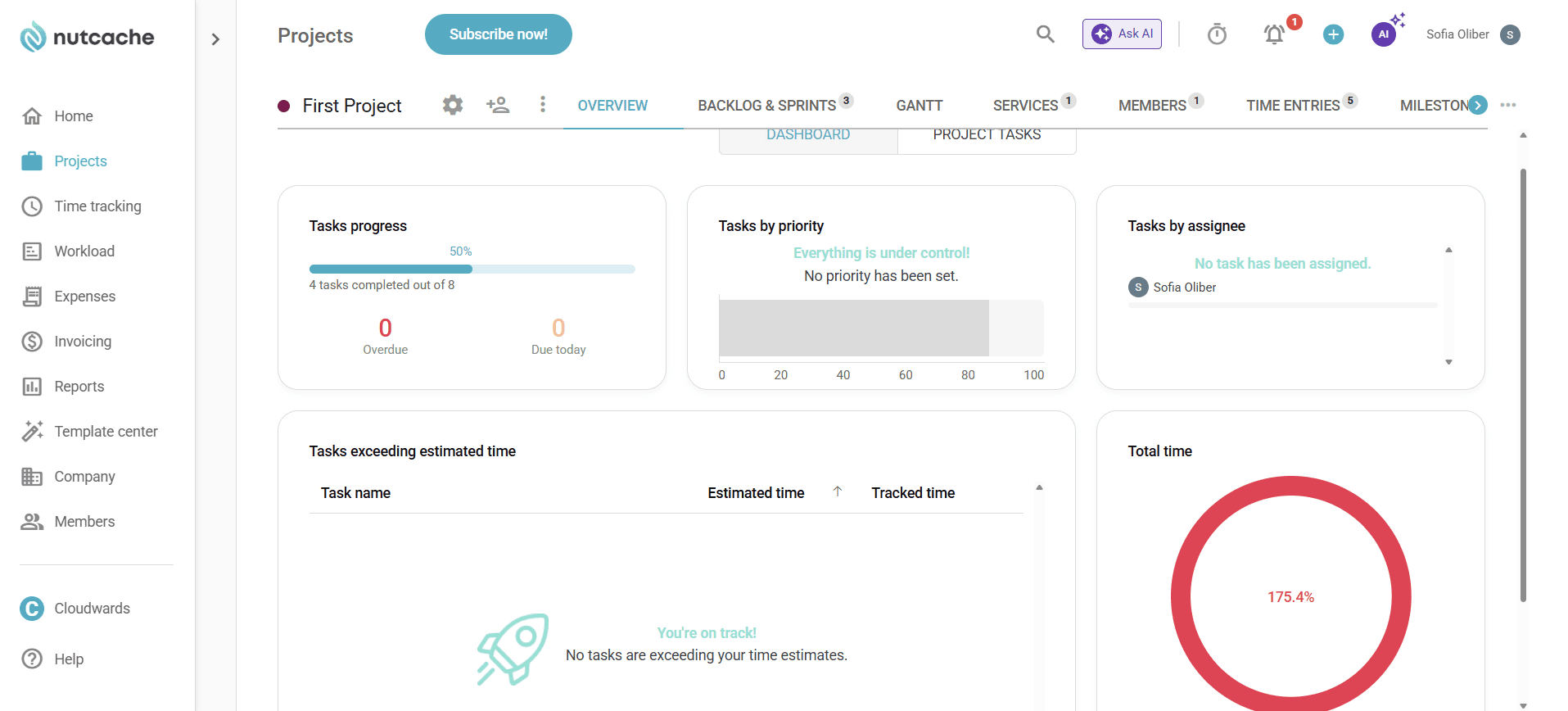 Try Nutcache if your team needs to closely track budgets or invoices. The software offers comprehensive project management tools and a clear interface. You can test the software using its free plan.