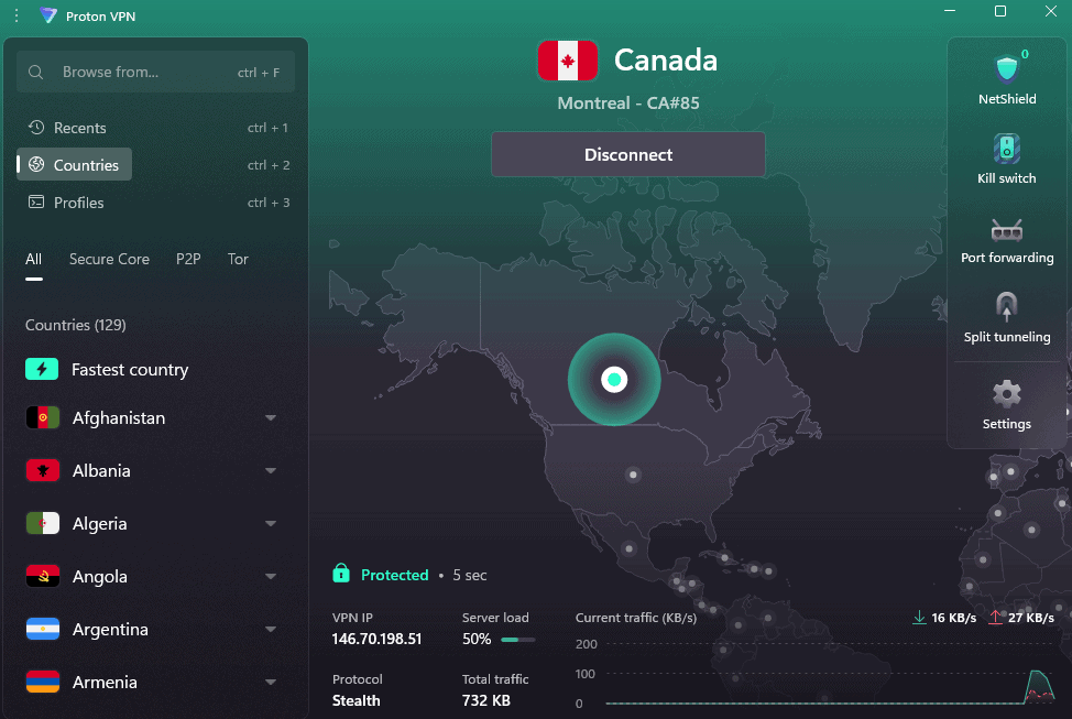 Basic features shared by quality VPN services include a kill switch, which prevents data leaks if the VPN connection drops unexpectedly, a wide server network spanning various countries (Canada being key for our purposes), user-friendly apps for easy navigation, multi-device support and reliable 24/7 customer support to assist with any tech issues.