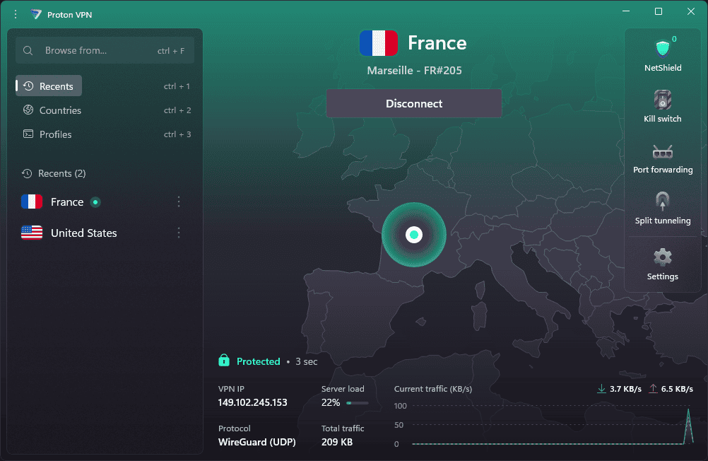 What sets Proton VPN apart is its Swiss jurisdiction and rock-solid commitment to privacy. The service has undergone annual independent audits by Securitum since 2022, verifying its no-logs policy. For French users concerned about government surveillance, the Secure Core feature routes your traffic through privacy-friendly jurisdictions before reaching France, adding an extra layer of anonymity.