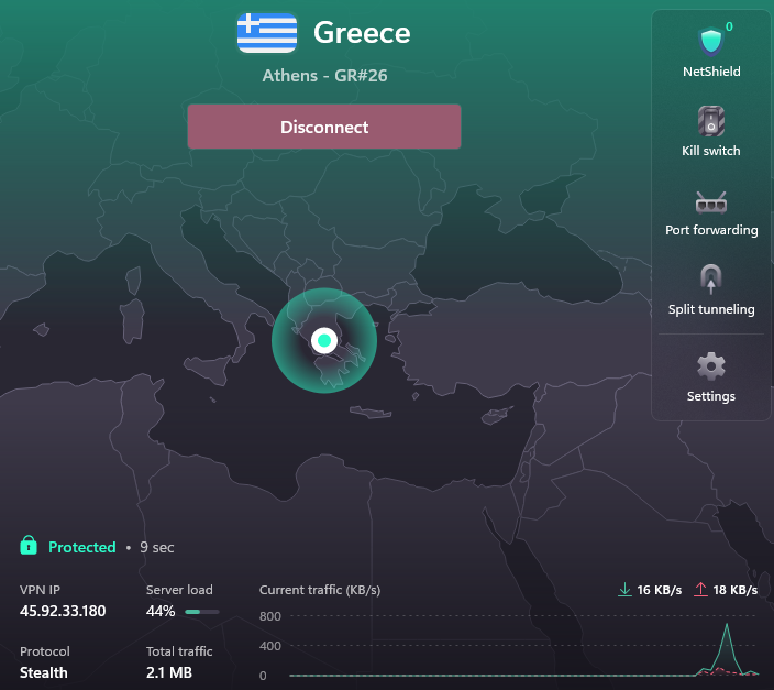 NordVPN has a massive server network spread across 60 countries, including Greece. This means you can acquire a Greek IP address using NordVPN. We go in more detail about NordVPN’s feature set in our NordVPN review.