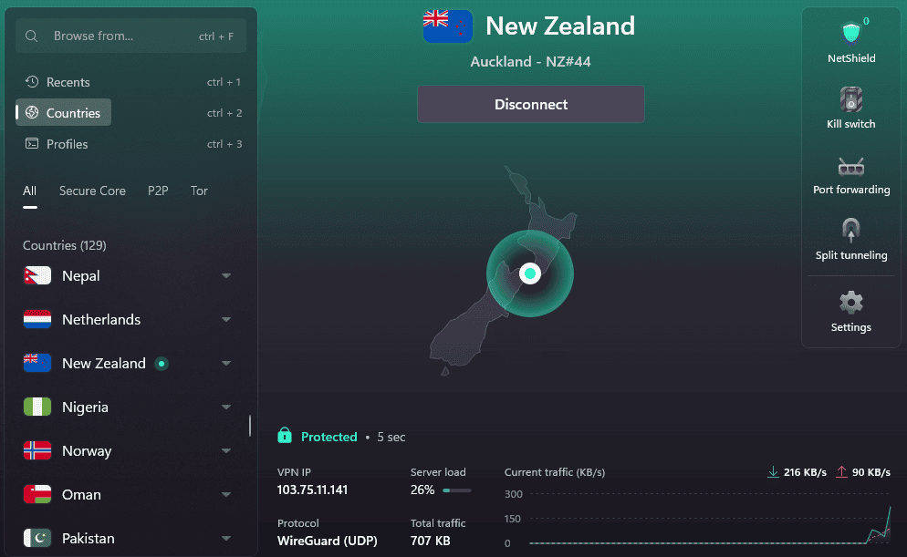 A generous free plan is available as well, with servers in 10 countries, though New Zealand isn’t included in the free tier. If you’d like to try the paid service before committing, you can use Proton VPN’s 30-day money-back guarantee.