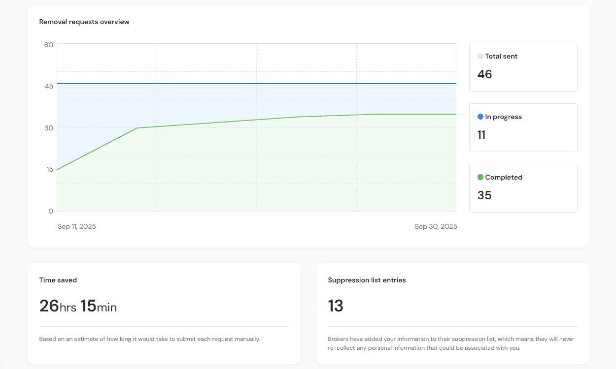 I found Incogni very easy to set up and use — it took just a couple minutes to subscribe and add my details. The first requests went out nearly instantly, and I saw results within the first two hours. I was pleased to find detailed and regularly updated reports on the status of requests and the data removed from different sites.