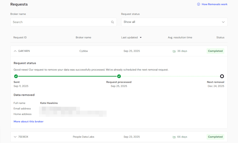 Incogni’s automated approach to removals across more than 420 data brokers is more than just a one-time benefit — the service resubmits requests regularly to keep private information offline. Best of all, it requires no manual input aside from adding your personal details during setup.