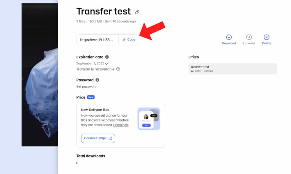 If you set your file to send directly via email, it will send once the transfer hits 100%. However, if you choose to share it via a link, remember to copy the link once your files have transferred.