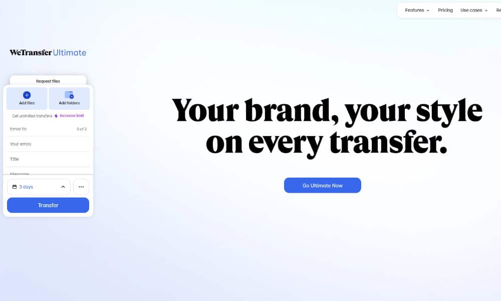 If you don’t need the file organization or storage of a cloud storage service, using a file-sharing service will be a better option for you. Below, we go over how to use WeTransfer to send files. Other file-sharing services will have similar steps.
