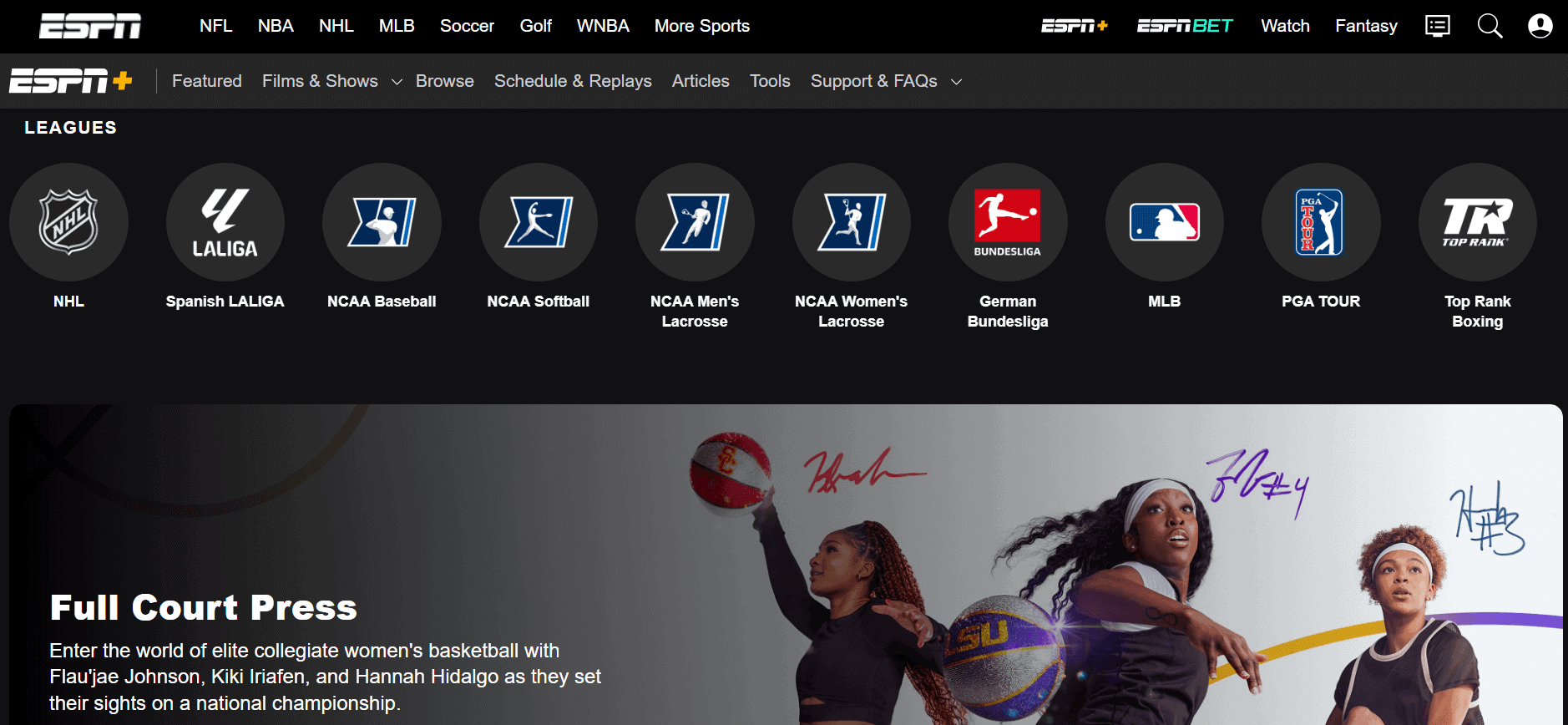 ESPN+ is one of the most reliable premium alternatives to Footybite, especially if you’re into American sports or select international soccer leagues. It offers HD livestreams, exclusive shows and access to UFC fights, tennis and niche tournaments.