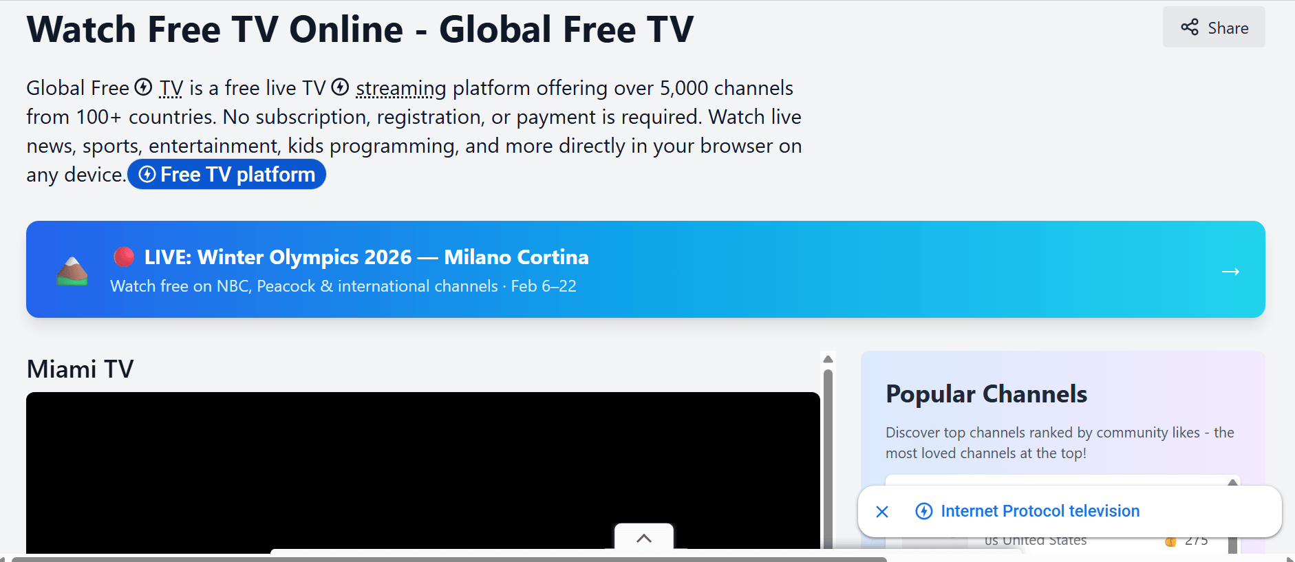 Global Free TV — 5,000+ Channels From 100+ Countries With No Sign-Up Required