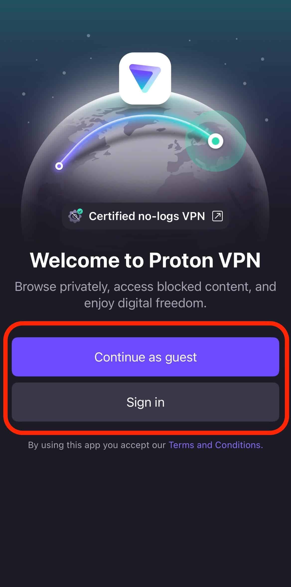 Most VPNs will ask you to log in — Proton VPN is one of the few VPNs that don’t require account creation for the free plan, so you have the option to continue as a guest.