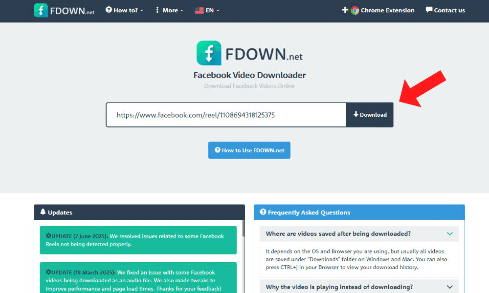 Go to your chosen Facebook video downloader. I’m using FDown for this guide. If you pick a different option, make sure to choose one that doesn’t require you to sign in with Facebook, as this can pose a security risk.