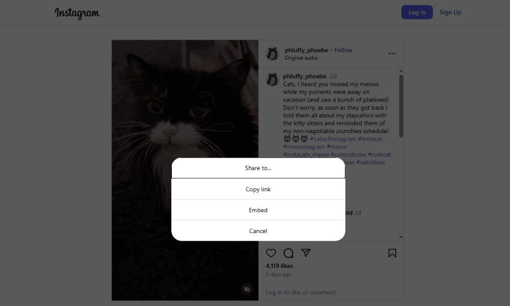 Click the three dots to bring up the post options. You can find these in your browser at the top right next to the creator info. On mobile, you can get the link by clicking the paper plane icon.