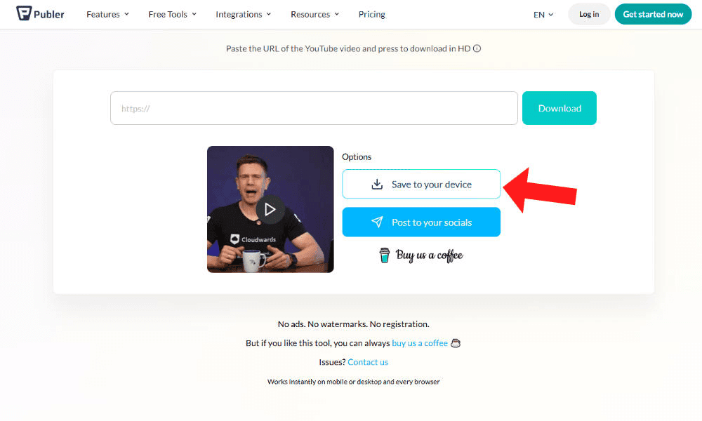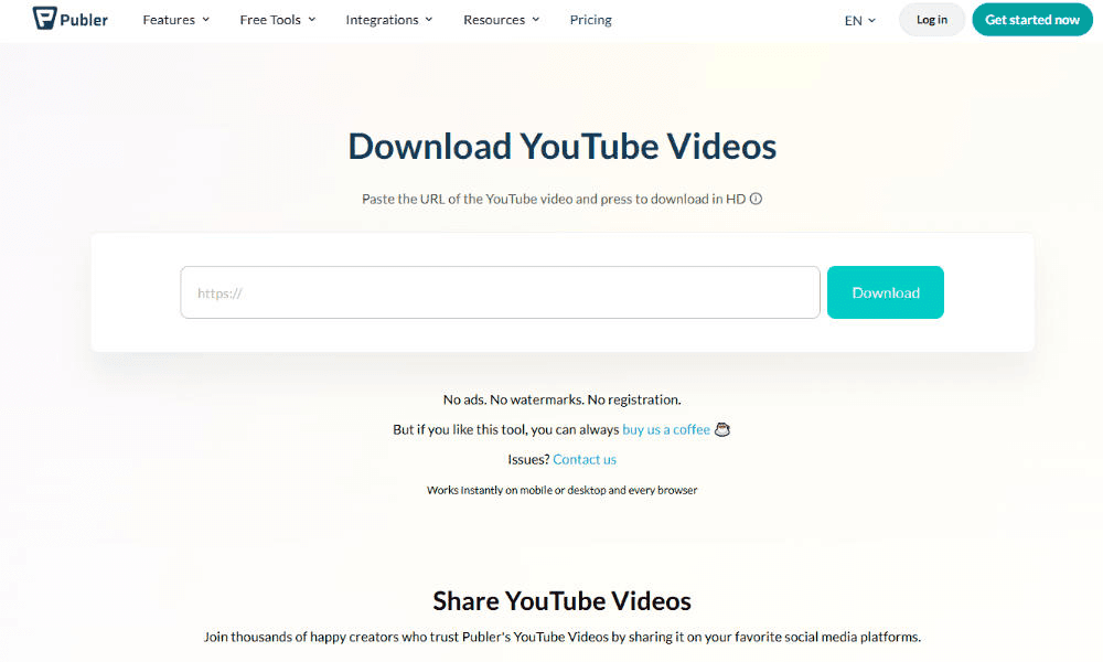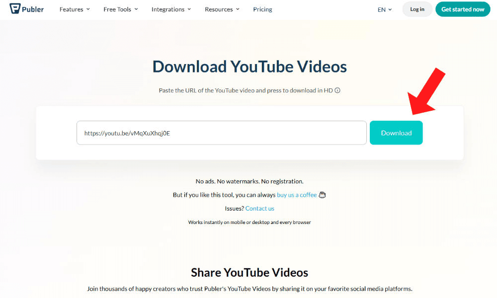 Open the YouTube video downloader of your choice. As mentioned, I’m using Publer in this example.