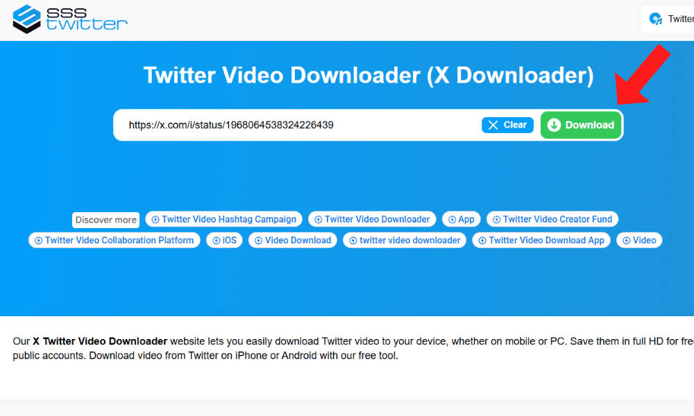 Multiple tools are available that allow you to download videos from X. Once you’ve chosen a tool, you’ll need to find the video URL. I’ll show you how to get the URL and download videos using SSSTwitter.