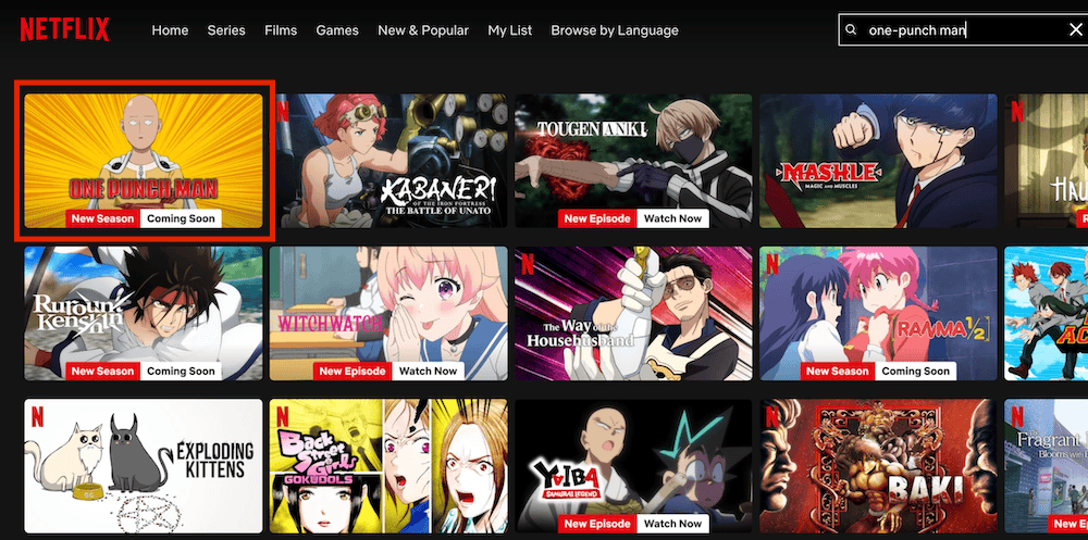 Go to Netflix and search for ‘One-Punch Man.‘ Click on a season and episode to start streaming.