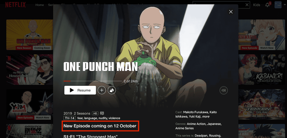 Yes, as we mentioned in the section above, you can watch seasons 1 and 2 of ‘One-Punch Man’ on Netflix in Mexico, the U.K., Canada, Brazil, France & a few other countries. We also found that season 3 will begin on October 12 on Netflix in Mexico. We do not have a confirmed date for any other Netflix library, though.