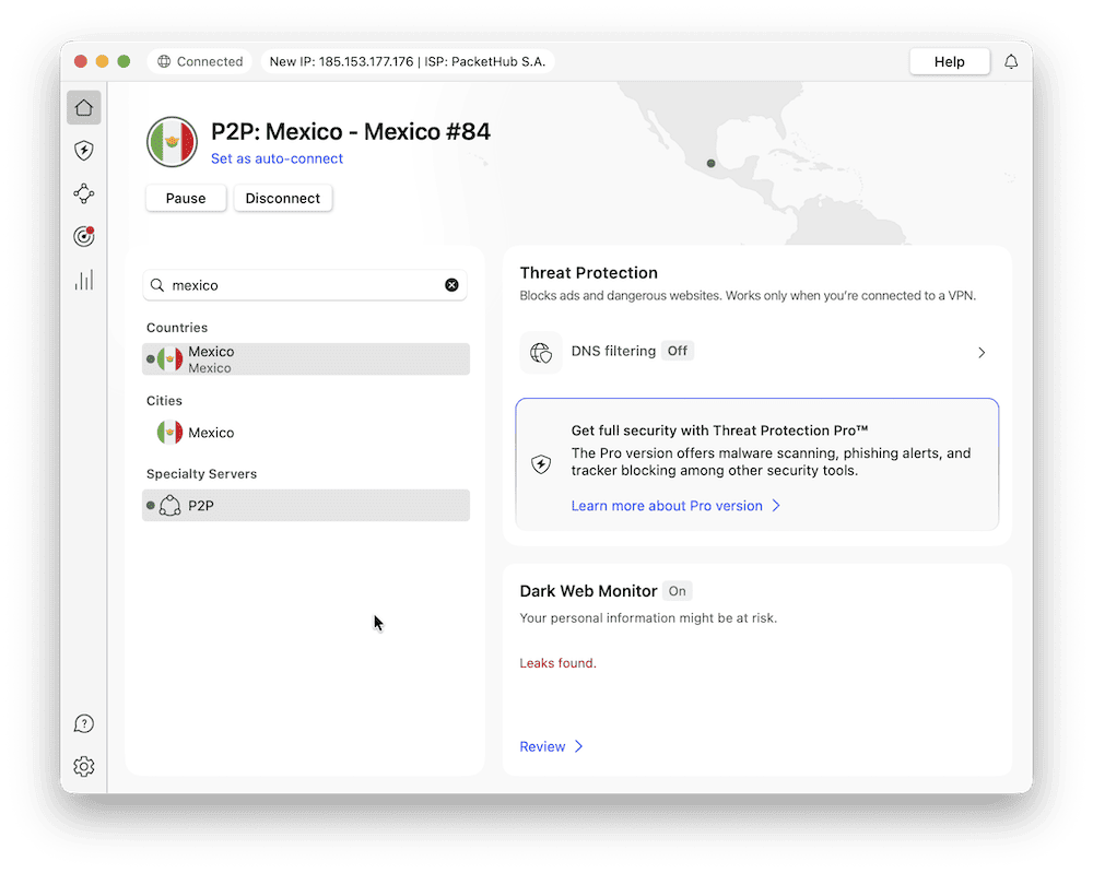 There are many free VPNs available, but most aren’t able to provide reliable streaming access or performance. PrivadoVPN, however, is a great VPN that offers a limited free plan. With that, you get 10GB of monthly high-speed data and access to servers in 10 countries, including Mexico and the U.S. You can read our PrivadoVPN review for a better look at the service.