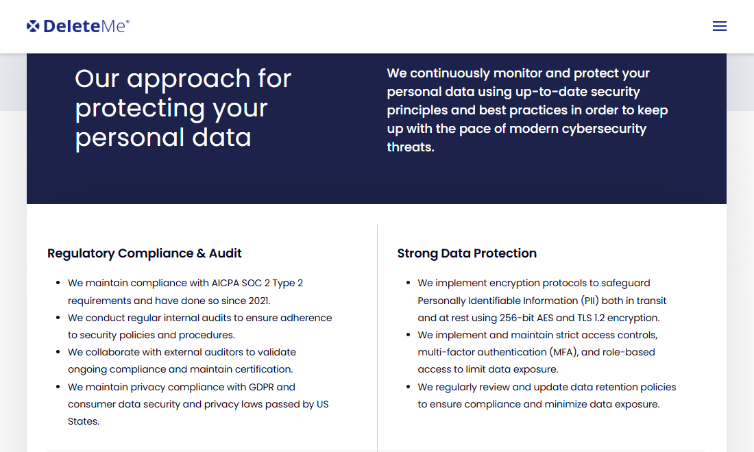DeleteMe maintains regulatory and privacy compliance for personal data.