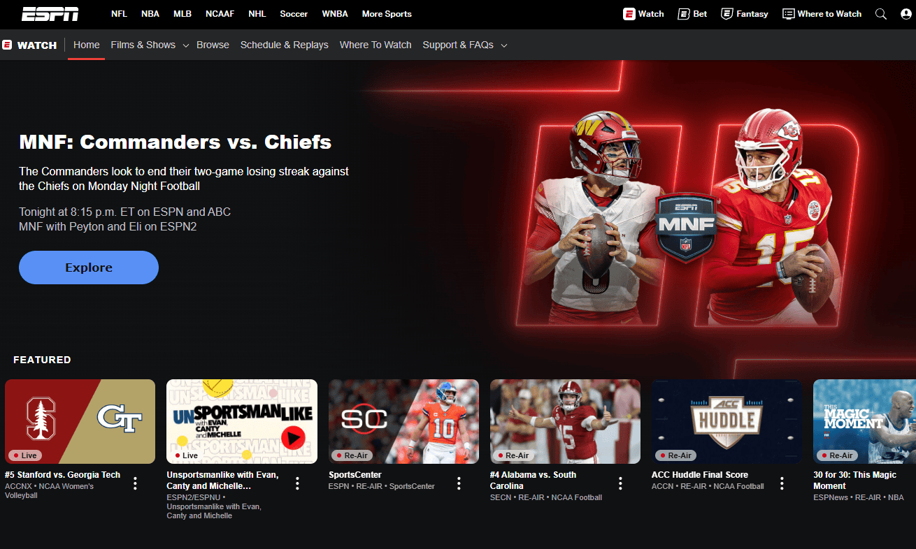 ESPN is a good pick, especially for its American content, including the NHL, MLB and exclusive ESPN content in HD quality. It’s also affordable compared to most other premium streaming services.