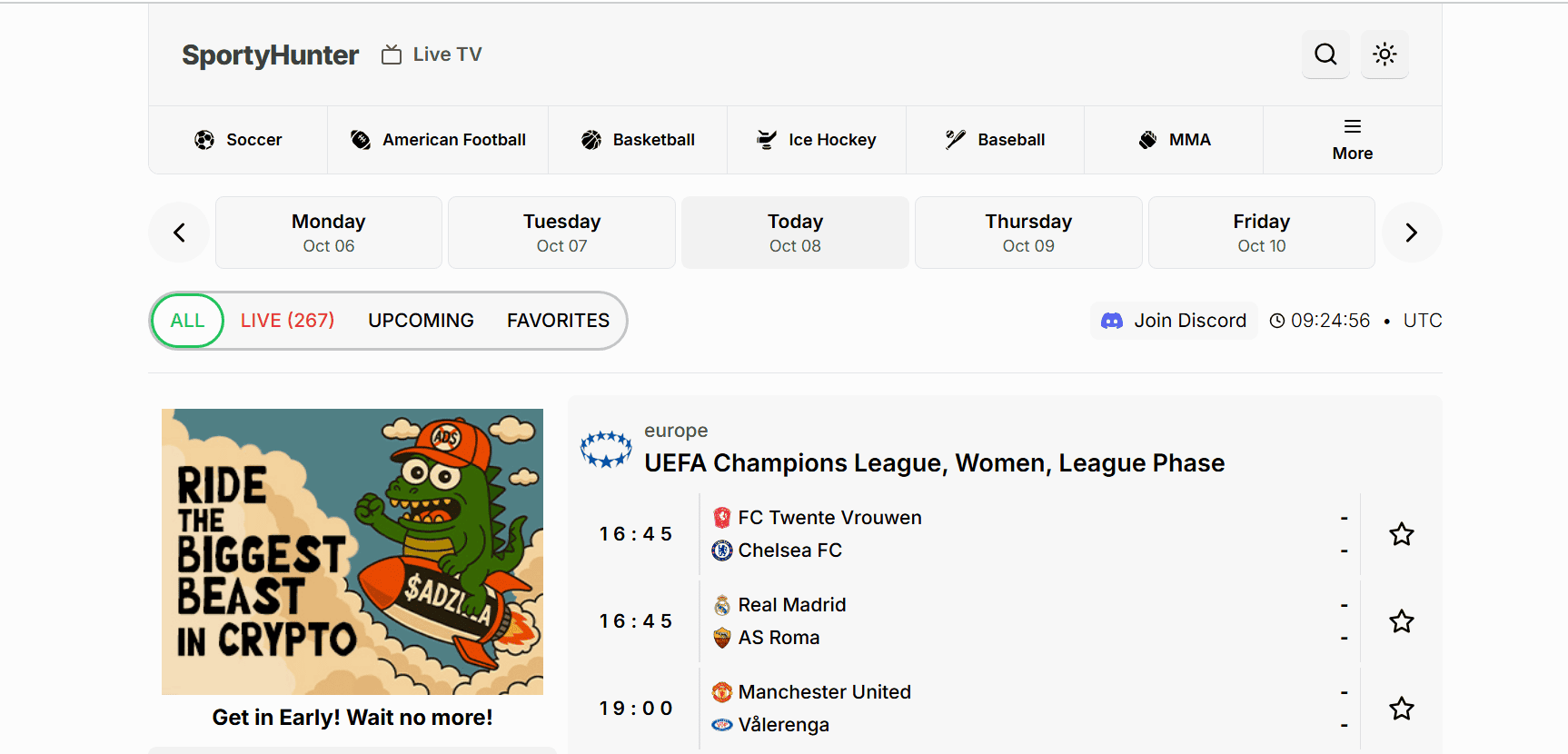 Sport7 is a useful MethStreams alternative for watching niche sports. I like that its interface is organized based on sports categories, making it easy to find live and scheduled games for each sport.