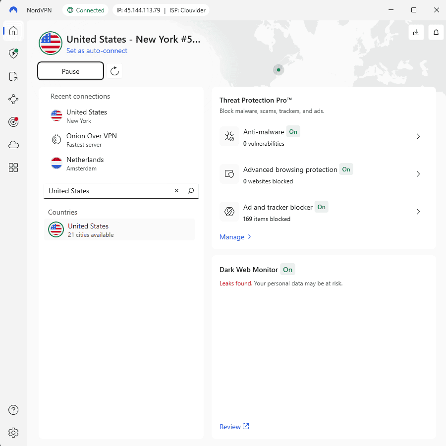 What sets NordVPN apart is its secure NordLynx protocol, designed for faster speeds and stronger security. I also like its Threat Protection tools, which block ads, malware and tracking scripts. These features are ideal if you’re worried about privacy under Missouri’s new law.