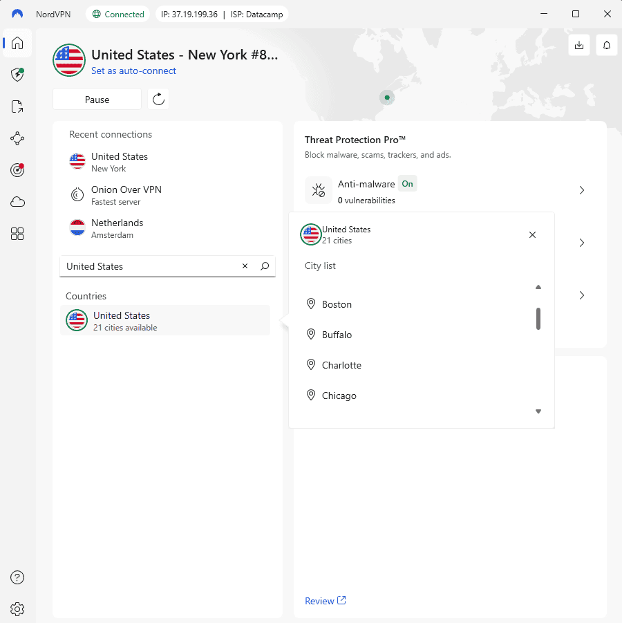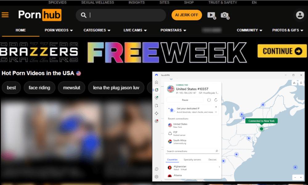 NordVPN was consistently the fastest VPN in my tests, maintaining stable performance across its U.S. network. It worked with streaming platforms, regular websites and adult content sites without any issues or interruptions.