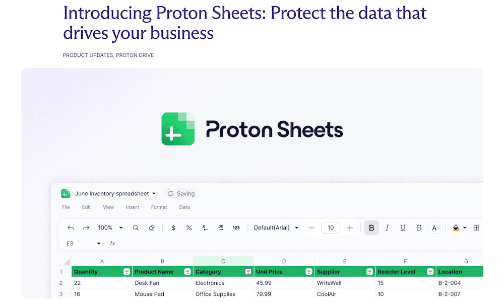 Proton Sheets is a client-side encrypted spreadsheet tool that existing Proton Drive users can use for free.