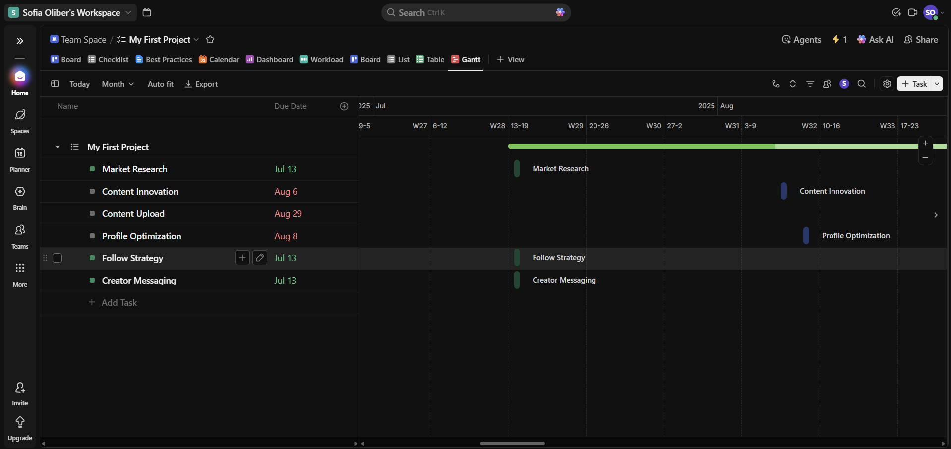 ClickUp is one of the most complete project management options, offering essential features such as customizable workflows, advanced views and integrations. It delivers professional results, even as free project management software.