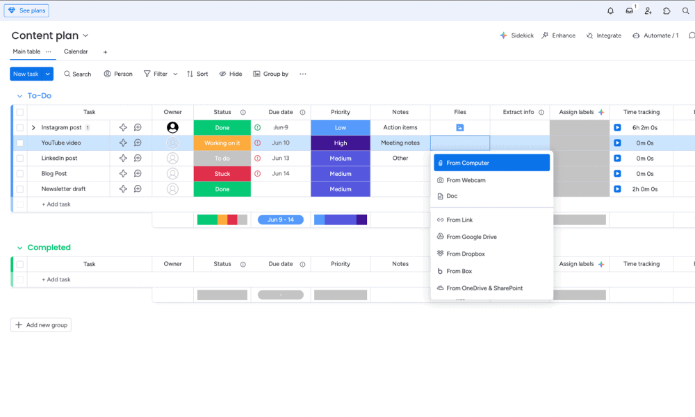 For example, in a digital marketing agency, copywriters can upload ad content, designers can share graphics, and account managers can attach client feedback to each task. With everything updated centrally, the team can avoid miscommunication, ensure they’re working with the latest assets and successfully deliver campaigns to clients.