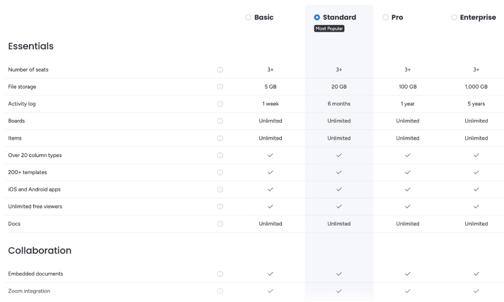 Match features to your needs: Identify your must-haves — like task tracking, reporting or file storage — and pick the best-value plan that offers them.