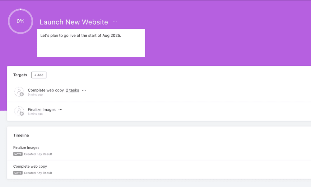 For instance, a team working on a rebranding project can set the goal of launching a new website. They can schedule milestones within the goal, such as finalizing the web copy and images, completing design mockups and testing the site. By mapping these tasks against deadlines, the team can stay aligned to achieve the project objectives.