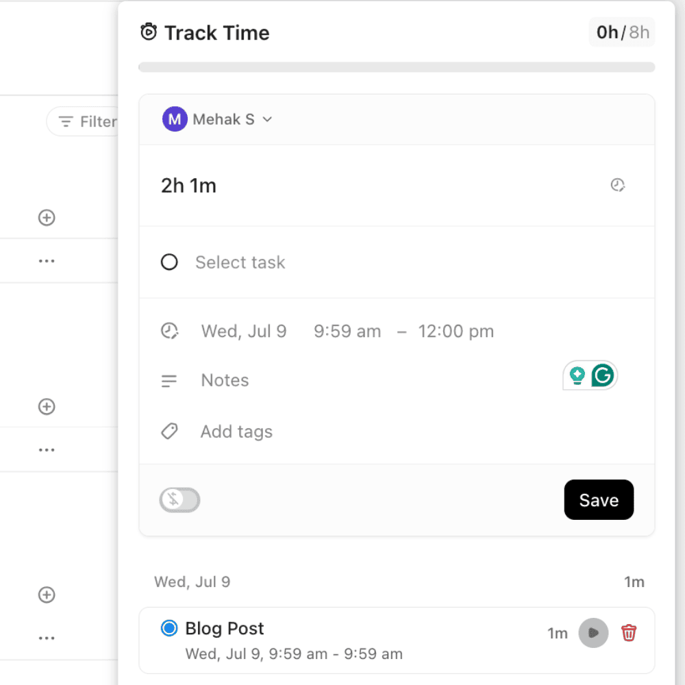 Project management tools like ClickUp include native time-tracking features that record how much time spent is on each task. This eliminates the need for external time management software, keeping an entire project centralized in one platform. Read our ClickUp review to learn whether it might be the right choice for you.