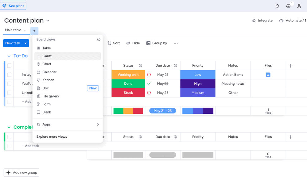 Dedicated project management systems shine in this area, with built-in options to automate repetitive tasks. For instance, in monday.com, automated deadlines can trigger reminders, task completion can update project timelines and integrations with Slack or email can keep everyone informed.