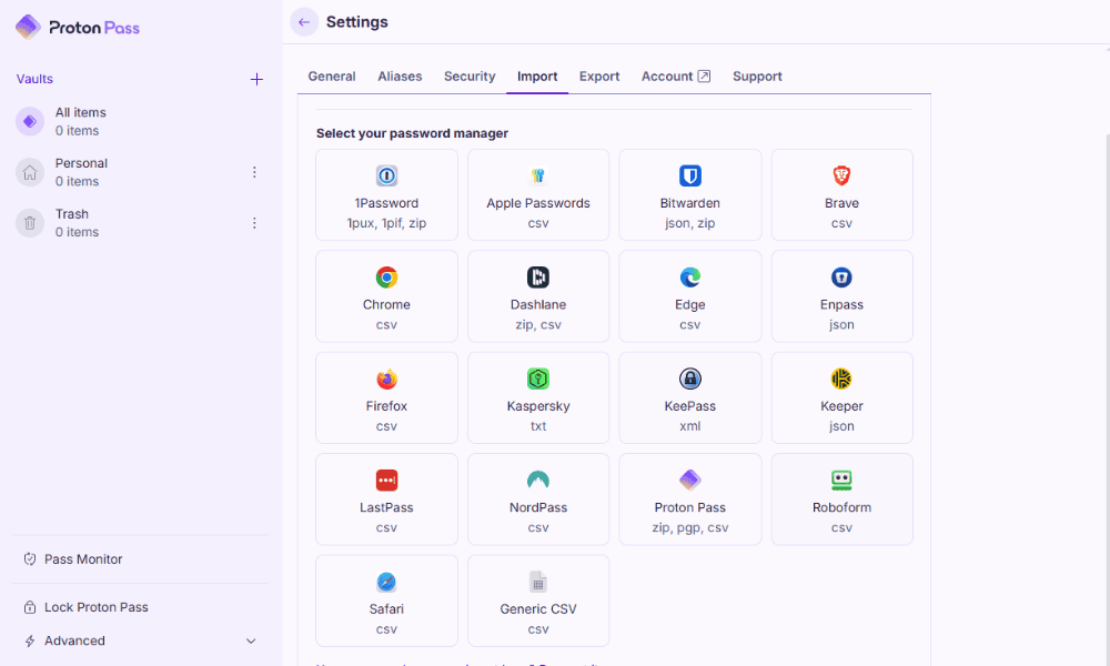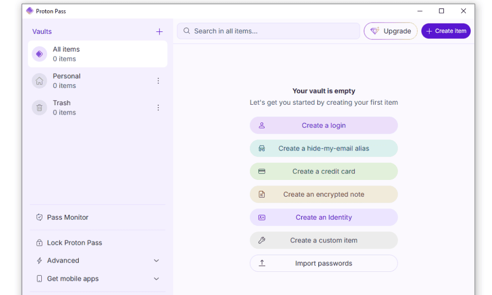 Proton Pass is reasonably user-friendly for creating and importing passwords. However, it loses some points for the user interface, which doesn’t provide direct access to the wider Proton ecosystem.