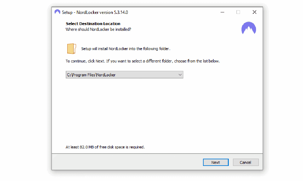 Choose where you want NordLocker installed. This process adds a new folder to your file browser, which will allow you to sync files.