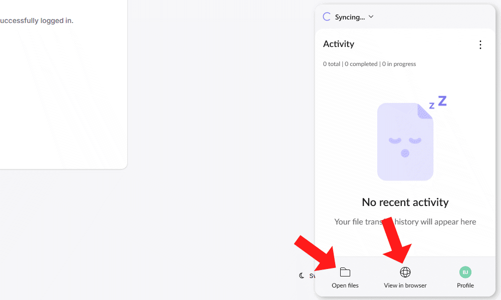 To set up file sync, choose “open files” for the NordLocker synced folder. Alternatively, you can open the browser client to upload and download files there.