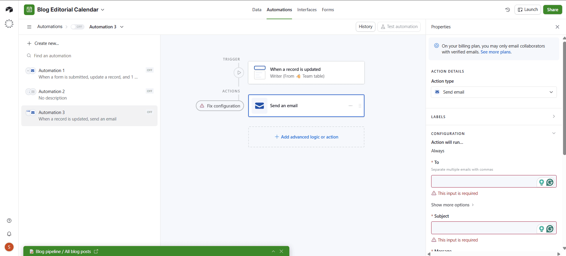 Airtable’s free plan is a solid option for simple teams or individuals. Large teams will need to upgrade to a paid plan. The best option is the Team plan, which offers good customization and automation options for $20 per seat per month, annually.