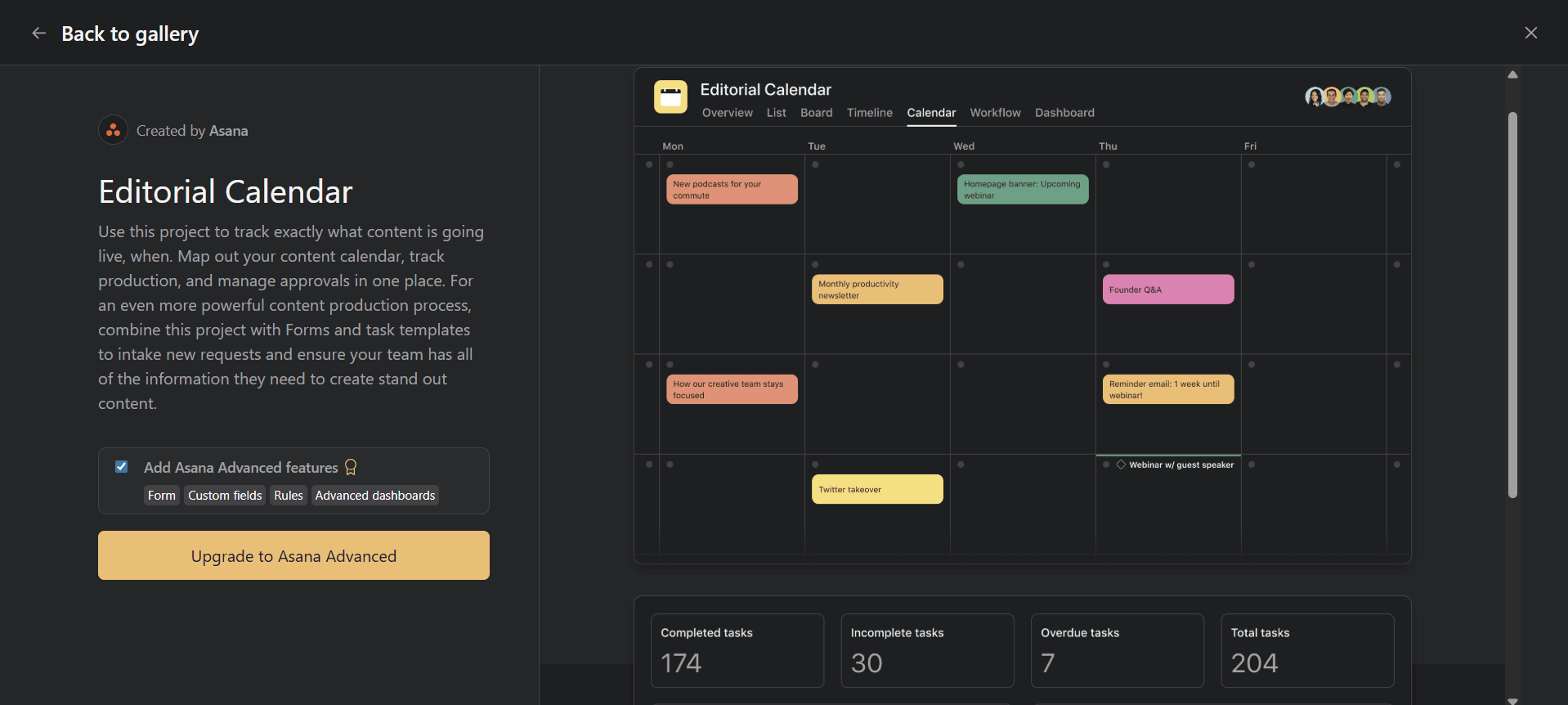 The Advanced and Enterprise plans offer more extensive automations and advanced analytics. Learn more in our Asana review, or test Asana with its free plan or a 30-day free trial.