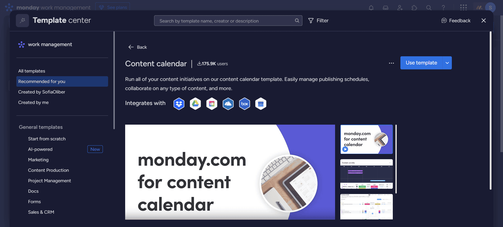 Once you’ve customized your first board, monday.com’s functionalities start to feel intuitive and familiar. The calendar and kanban views are ideal for content management and scheduling, and the key drag-and-drop functionality makes boards easier to manage.